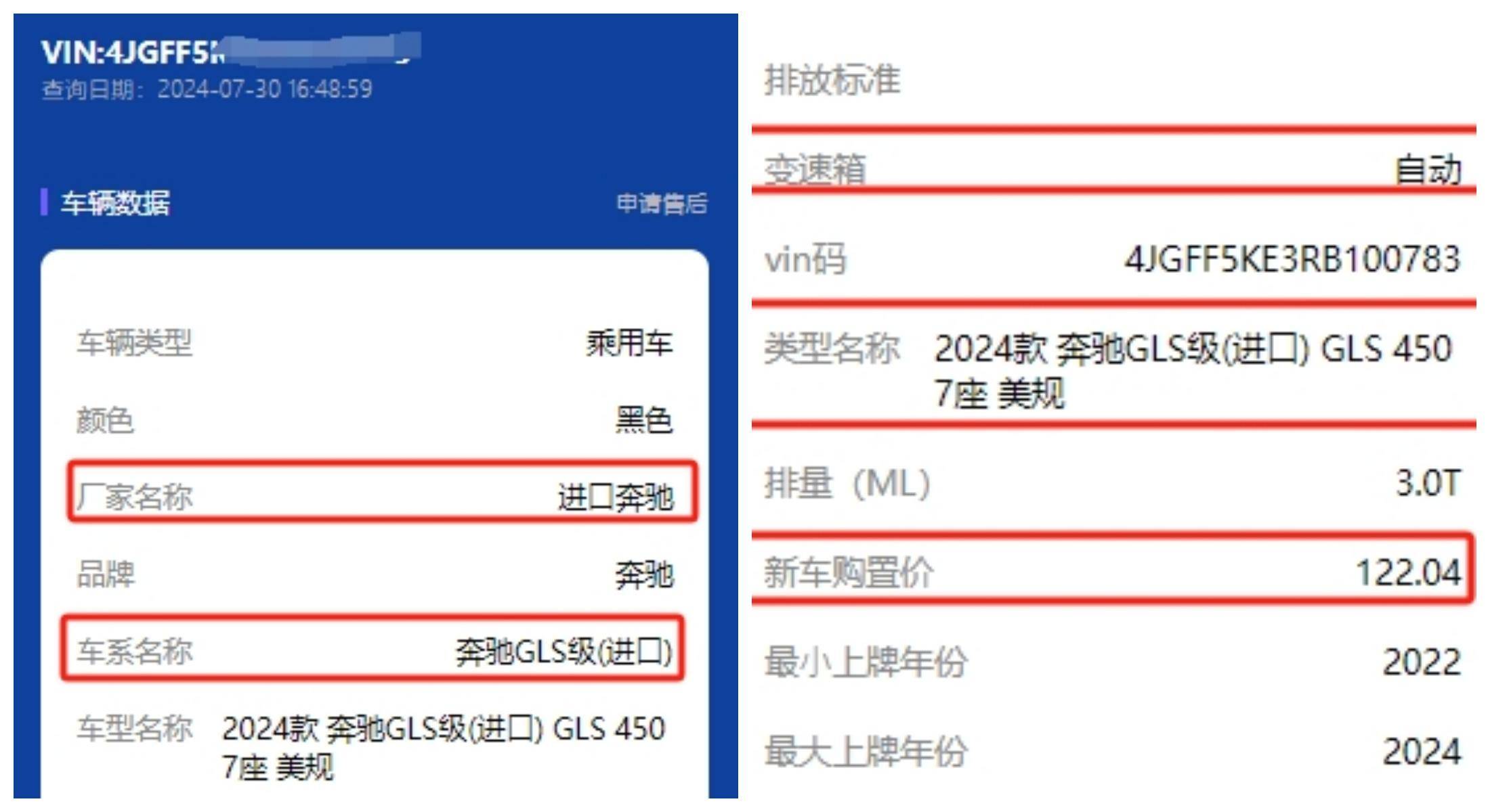 (3)输入车架号,点击查询; (4)系统将显示车辆的基本信息、配置及可选配件等。
