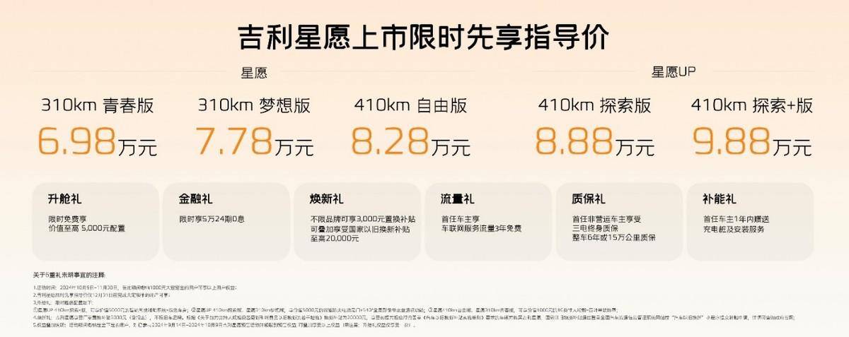 10月9日,吉利汽车正式推出了旗下全新A0级纯电车型——吉利星愿,新车共推出5个版本,售价区间为6.98-9.88万元;并且发布会现场也宣布了GEOME将正式并入银河系列进行销售。吉利星愿的上市不仅丰富了吉利银河品牌的产品矩阵,更将以突出的产品力在A0级市场中掀起一股新的热潮。