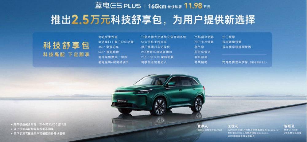 需要注意的是,针对蓝电E5 PLUS此项权益需要消费者在11月30日24点前下定用户即可享受这一新增权益,同时还可享受“无忧礼”、“置换礼”、“智联礼”。对于此前购车用户权益依然有效,但与本次权益不可同享,相当于是二选一,这对用户来说是真不容错过的利好消息啊!