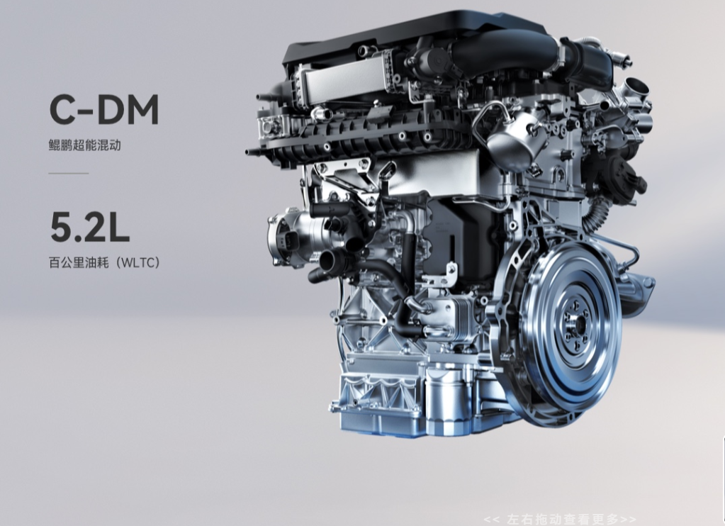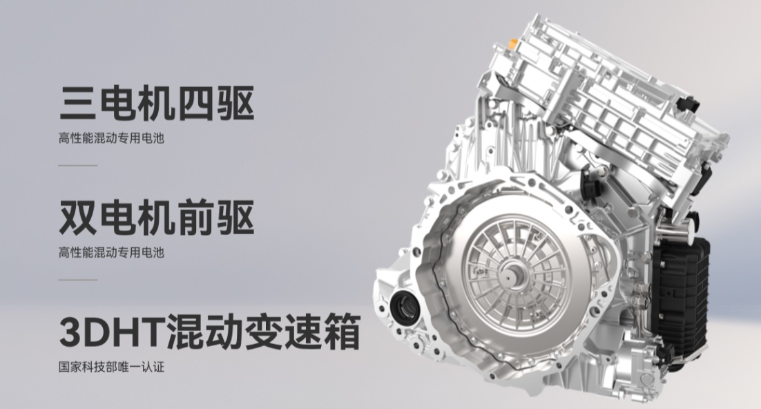 电动机则提供165千瓦的最大功率和390牛·米的峰值扭矩。整个动力系统的综合功率达到280千瓦,综合扭矩为610牛·米。车辆匹配了3挡DHT混合动力专用变速箱,0-50km/h加速时间为3.8秒,馈电状态下的油耗为5.69L/100km。