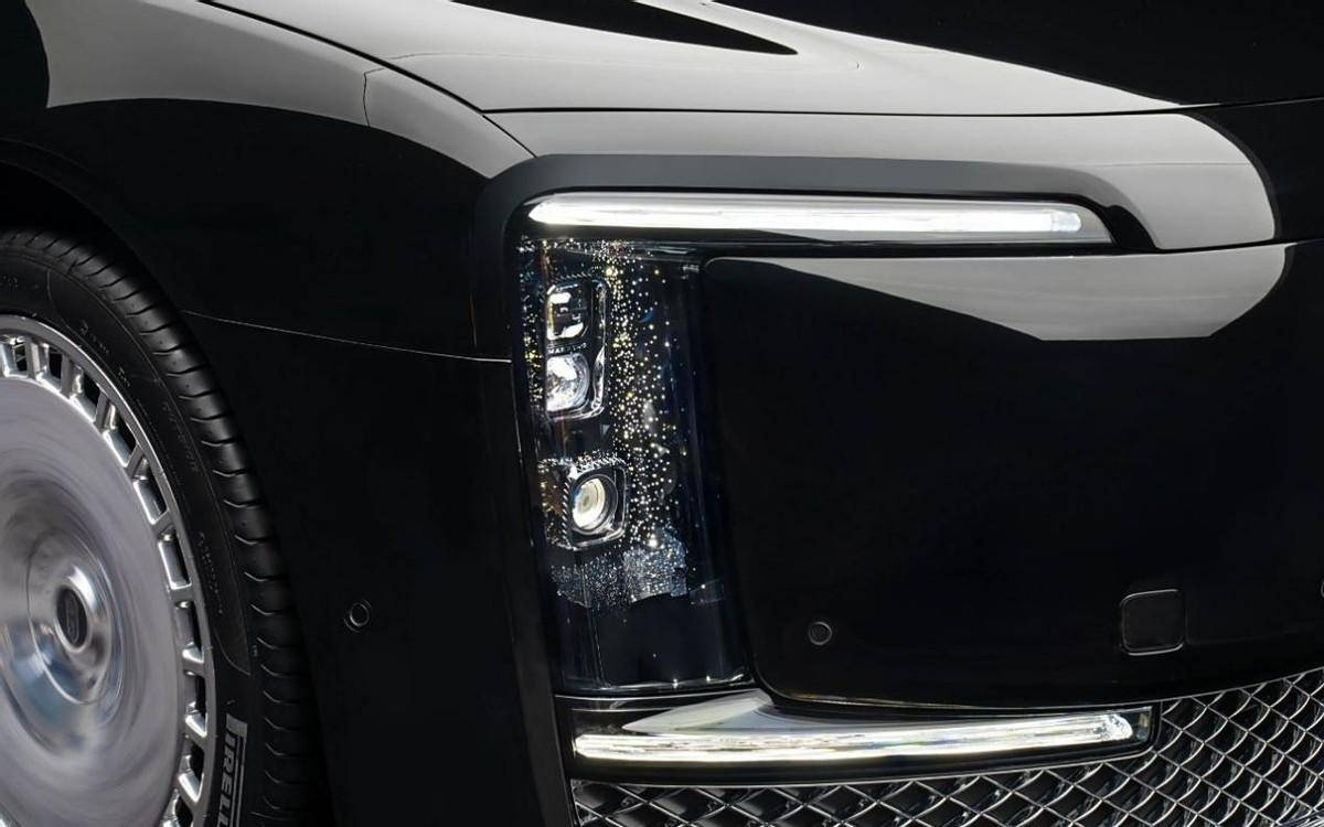 再例如,尊界S800中间的大灯组内分为三部分,周围是环绕纵深的星河细节点缀,看着确实也十分具有科技感。
