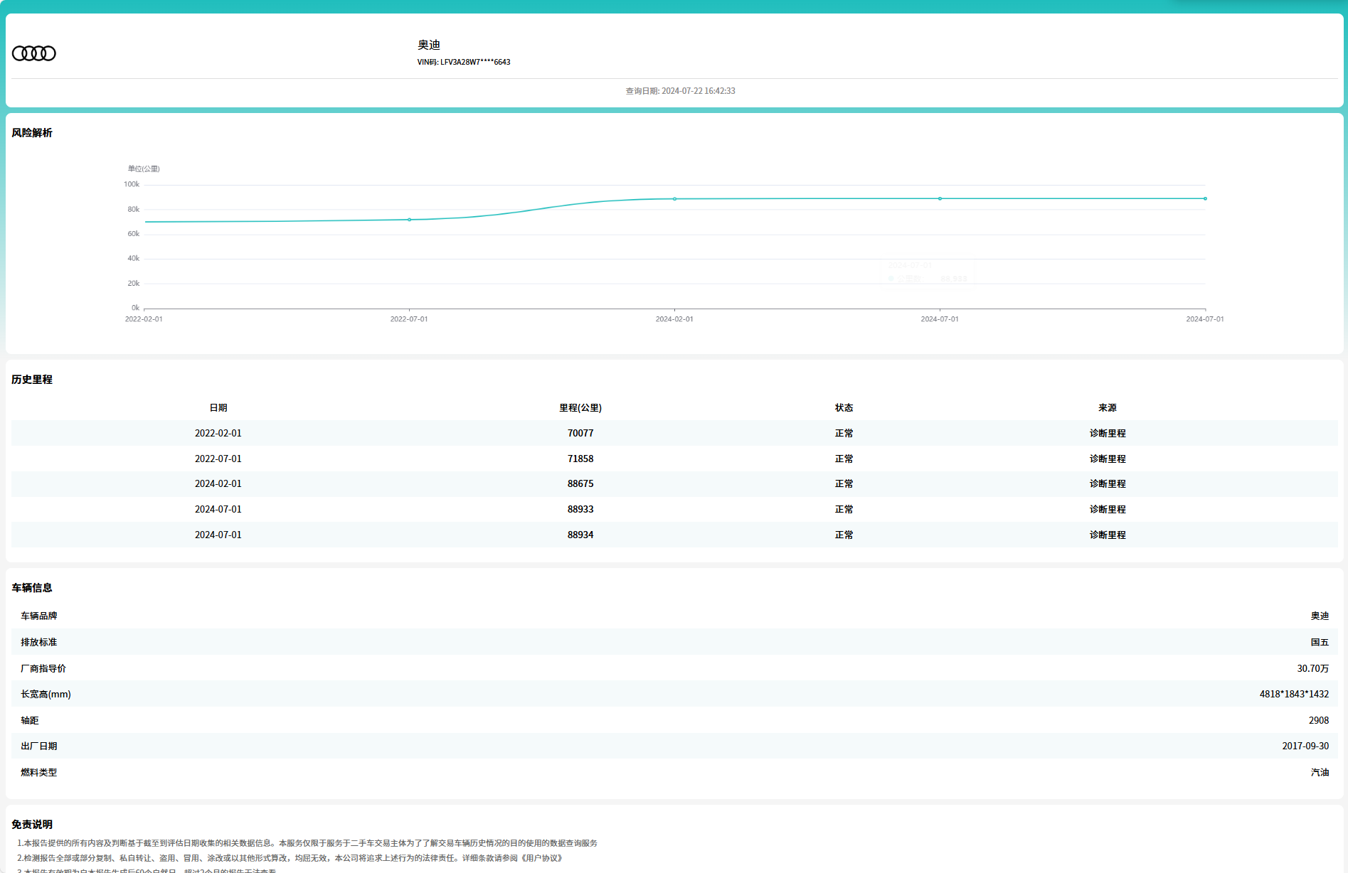 车辆的维保记录是否规律,最后一次进店时的里程数,都是非常重要的数据,与之相比较,可以对车辆现在的公里数做一个对比,和初步判断。