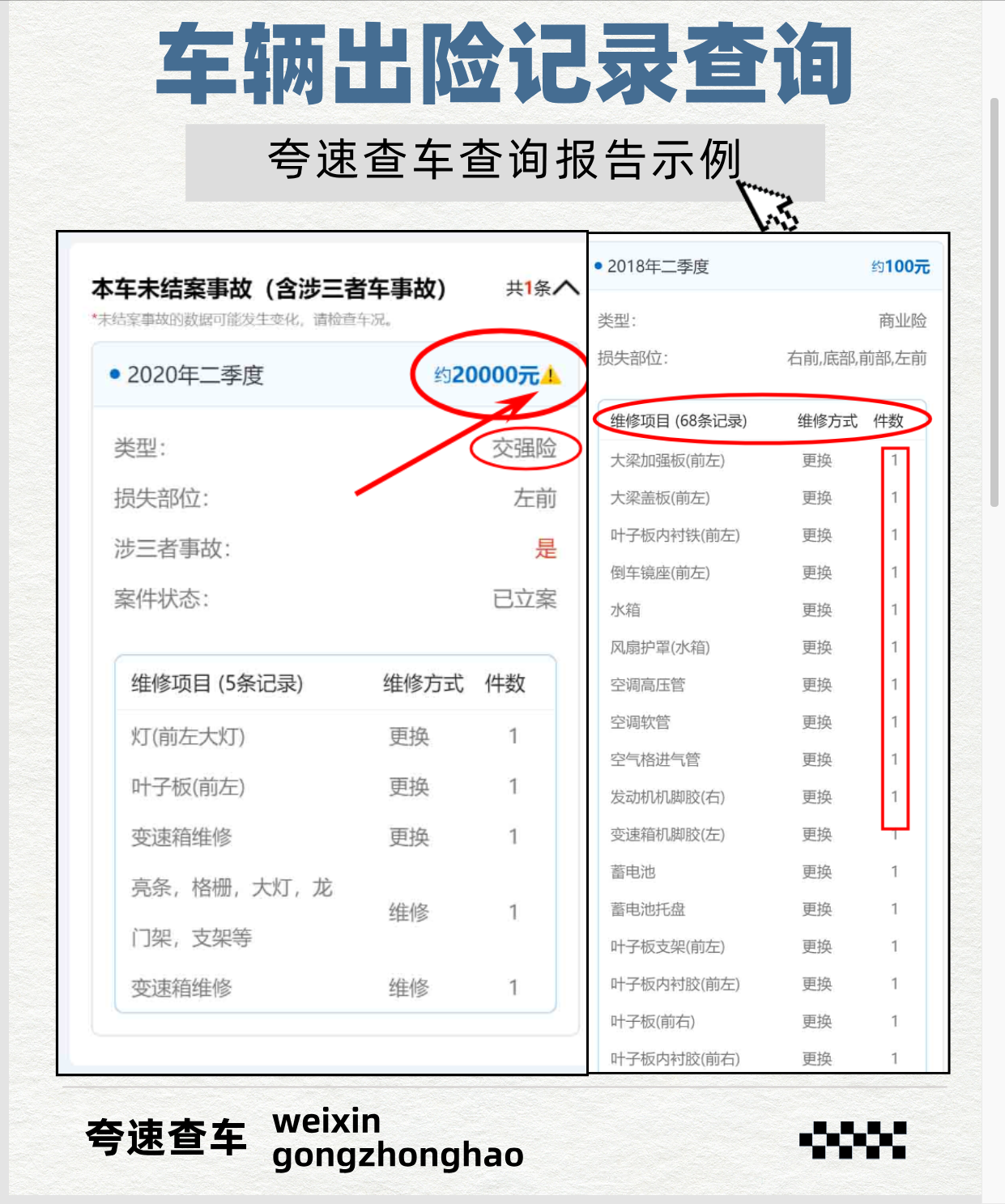 保险记录:查询车辆的保险记录,了解车辆是否有过重大事故理赔。保险公司的理赔记录会详细记录事故发生的时间、地点、事故原因以及理赔金额等信息。如果理赔金额较高,通常意味着事故比较严重。