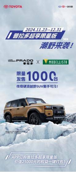 在追逐越野梦想的道路上,潮野玩家们从未停歇。12月7日,一汽丰田“普拉多英雄会”第三站于宁波如约开启。此前,全新普拉多曾直抵北极村寒风逐梦检验电机的稳定性,奔赴新疆穿越恶路考验越野极限性能。此次,全新普拉多领衔的一汽丰田SUV家族齐聚东部秀美的水镇丛林,开启一场硬核的穿越之旅,解锁全新的“普式”精致生活圈。截止12月31日,抢先订购普拉多超享限量版,即享价值25000元的专属购车礼遇,传奇硬派越野SUV从此触手可及。