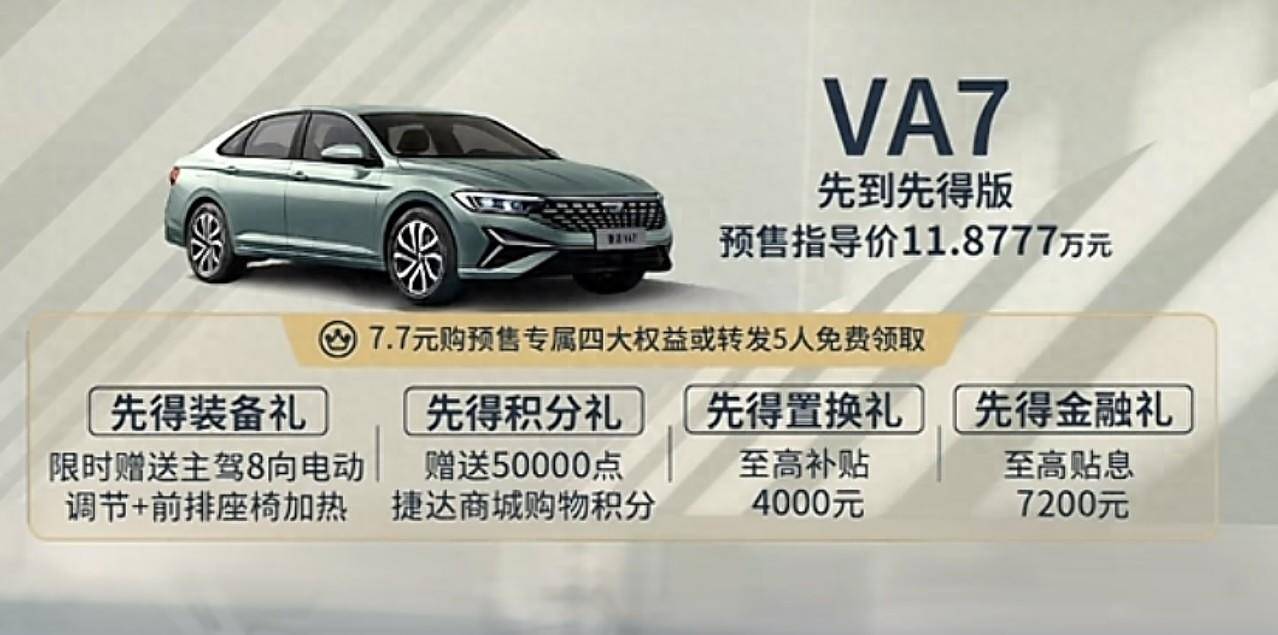 日前,捷达品牌旗下的捷达VA7车型开启了预售,新车的预售价为11.8777万元,搭载了1.4T+7DCT的动力组合,定位紧凑型家用轿车。而从新车的外观造型、车身尺寸和内饰设计来看,新车应该算是大众速腾的“平替”车型。虽然此前大家都猜测这款车可能会6.99万起售,但如今来看,这款车的正式售价预计不会太低。