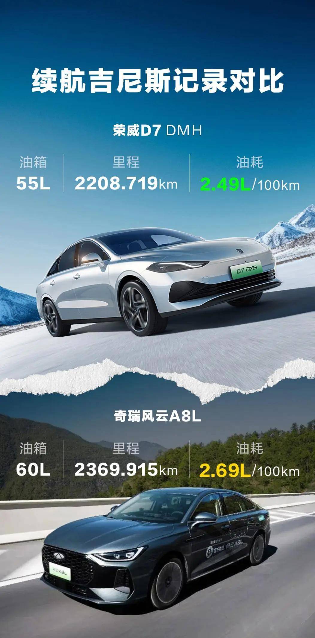 从大体上看荣威D7DMH与奇瑞风云A8L旗鼓相当,在用车成本上也都交出一份令人满意的答卷,单看吉尼斯纪录,奇瑞风云A8L小胜一筹,但在挑战难度上荣威D7 DMH则展现出了更高的水平。