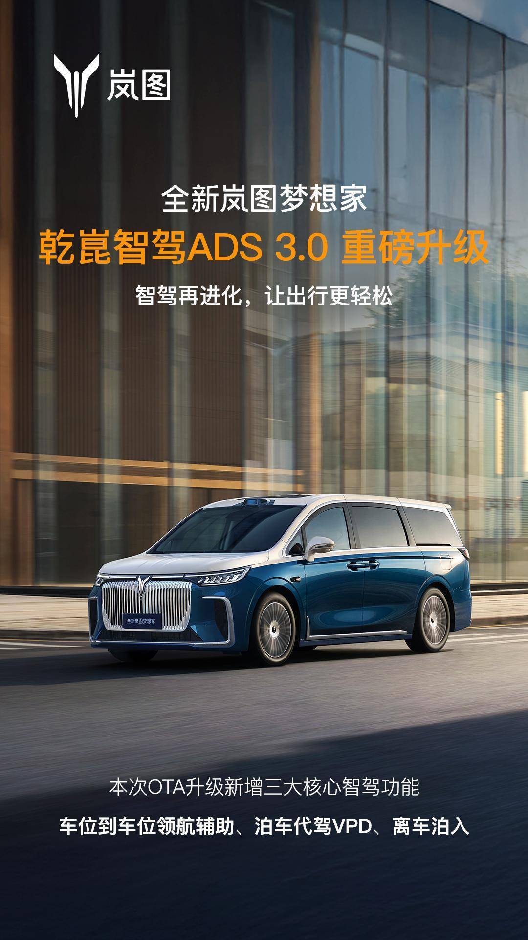 真智驾相伴,一如老司机。全新岚图梦想家乾崑智驾ADS 3.0的智驾功能升级,进一步展现出华为ADS 3.0系统快速迭代进化的综合技术实力,让全新岚图梦想家如虎添翼,为用户带来全新智驾迭代体验,更将新能源MPV的智驾水平推向了新高度,必将打破传统认知,持续引领新能源MPV发展格局。