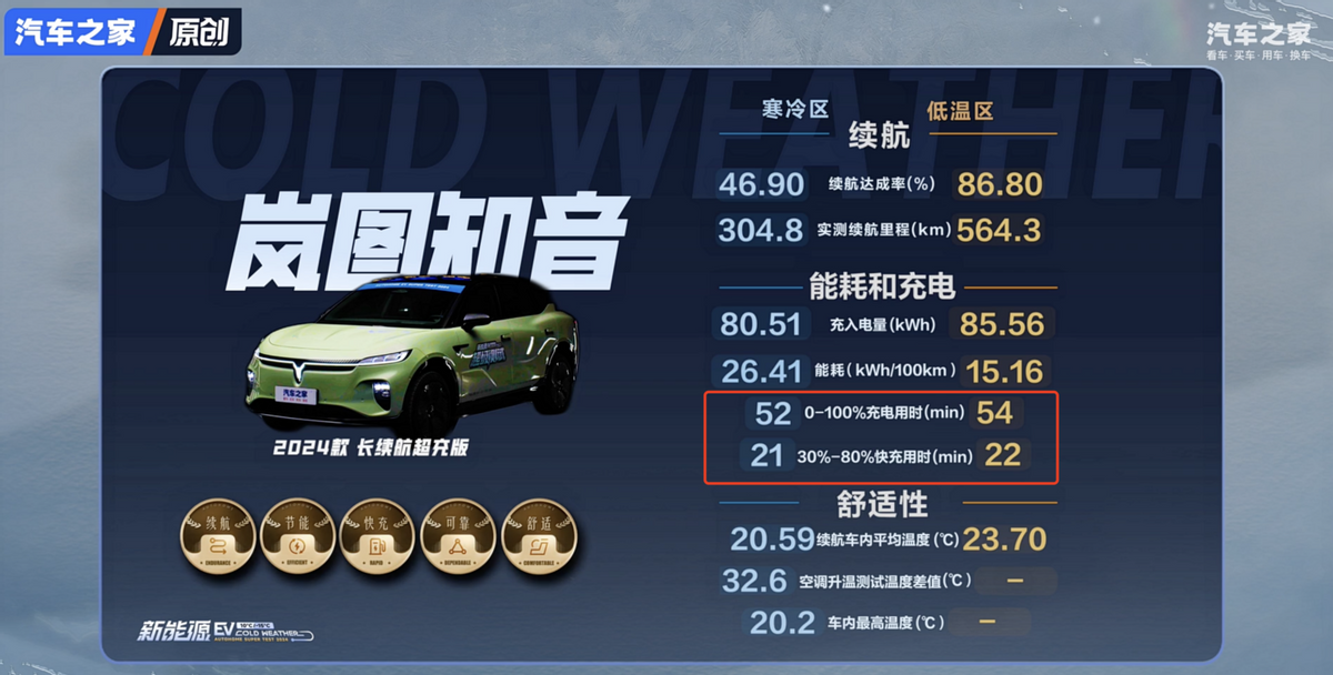 春节长途自驾的返乡途中,快速而顺畅的补能体验可谓尤为重要。岚图知音搭载了同级最快的5C超充技术,可实现充电3分钟通勤百公里,堪比加油的补能速度,基本可以告别充电慢的难题,大大减少回家路上的等待时间,让用户能够尽快与家人团聚迎接新年。而且,岚图知音5C超充几乎不受气温影响,即使冬天也无惧严寒,在汽车之家的冬季实测中,岚图知音长续航超充版在5°C~15°C的低温区,SOC 30%-80%充电仅需22分钟;在-20°C~-15°C寒冷区,SOC 30%-80%充电用时仅为21分钟,甚至比低温区用时还短,成绩均排在同级车第一水平。