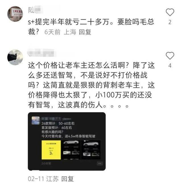 莲花给 ELETRE 加了个 L+ 的入门版,把起步价拉低到了 72.8 万。然后就是这次,起步价直接降到了 54.8 万。所以老车主们受不了了!