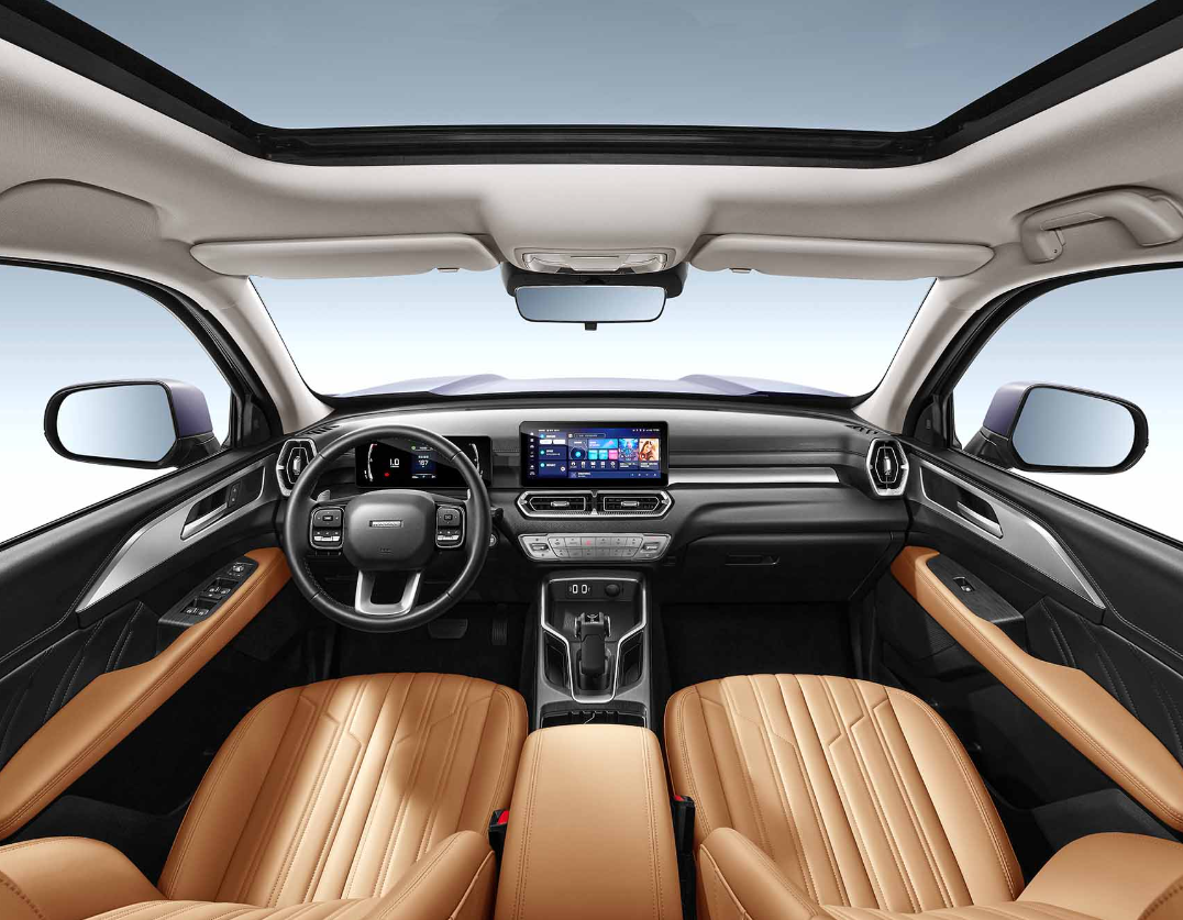 听取用户声音,2025款哈弗H5全系标配黑化套件,前格栅、行李架、轮辋、水切等处均采用高亮黑装饰件,视觉上更显魅力,如果再选择“魅影黑”车身颜色,那就更霸气了。标配固定侧踏以及17英寸轮辋,并可选AT胎,此外还新增电动尾门。