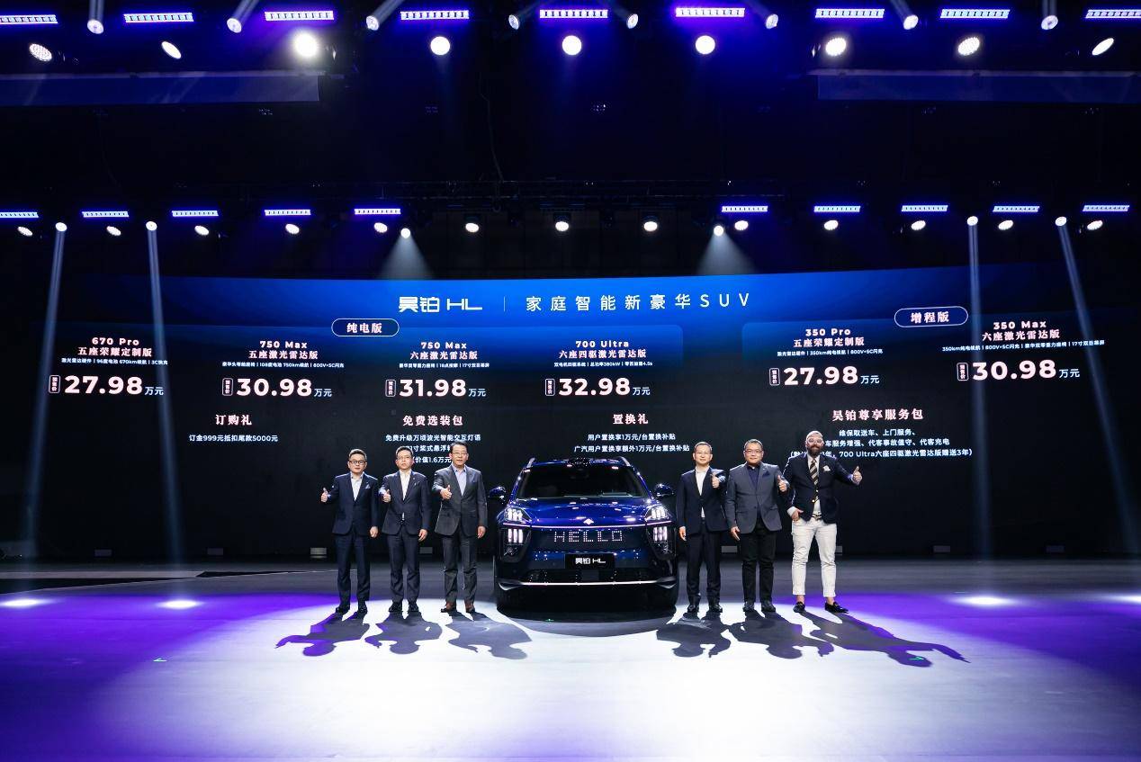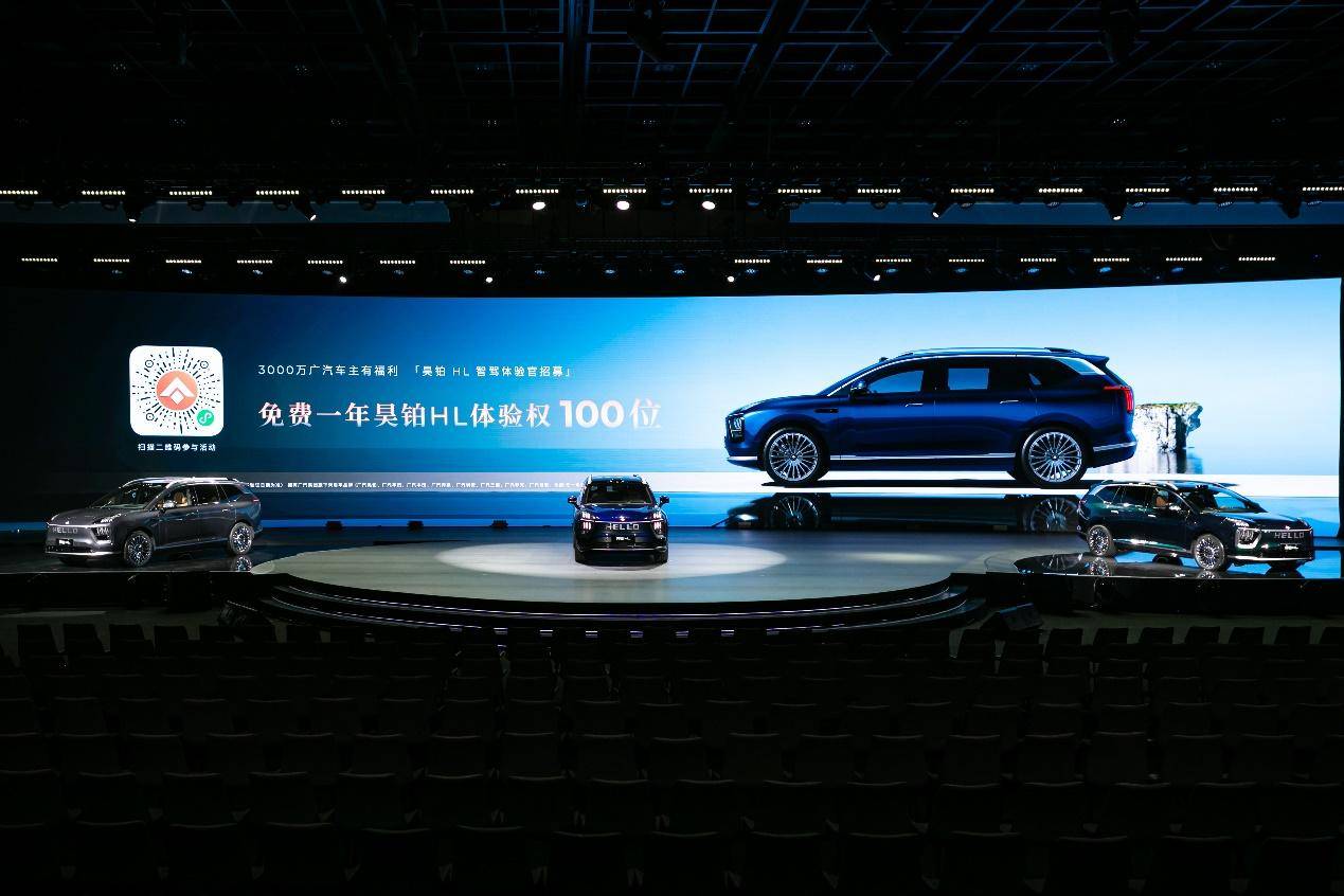 预售期间下定可享多重礼遇:智能交互灯语、21寸桨式悬浮轮毂选装包免费升级,同时享999元订金抵5000元购车尾款,以及价值万元的“昊铂尊享服务包”。置换用户可再享1万元/台置换补贴,广汽老用户可额外再享1万元/台置换补贴,诚意满满。此外,为回馈3000 万广汽车主,当晚,官方同步启动“智驾体验官”招募活动,限量开放100台昊铂HL体验名额,所有广汽车主都能通过广汽昊铂官方小程序报名,赢取一台昊铂HL一年免费体验权。
