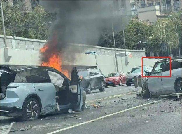 还好蔚来汽车各项被动安全装置都没有失效,车门也可以弹出打开,让乘员快速逃离车辆,不然后果就会很严重。