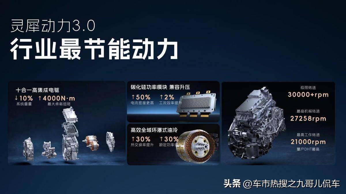 同时,灵犀动力4.0也正式亮相,它基于800V高压架构打造,引入十二合一高集成电驱,在集成设计和电机性能上持续进化,继续挑战15万级30000rpm的性能平权。