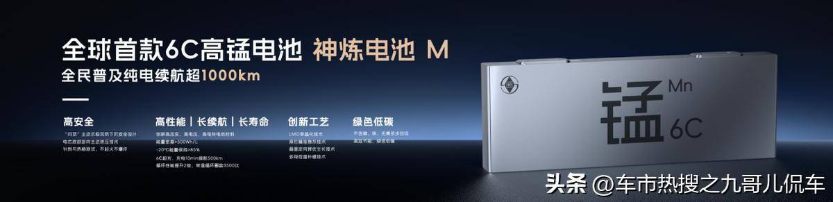 发布会上,神炼电池4.0也进化登场,它采用800V平台、CTB、智能无线BMS和AI能量管理等多项技术,实现安全再升级。同时,全球首款6C高锰电池——神炼电池M也将全面加持神炼电池4.0,7分钟即可补能50%。