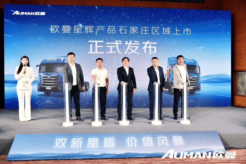 2025年4月9日,“双新星盾 价值风暴——星辉动力13L 500 马力燃气车石家庄首发”活动隆重举行。现场,搭载全新定制星辉动力的欧曼星翼 13L 500 马力燃气牵引车正式上市,并发布“服务保障联盟”计划,以领先品质产品和人性化服务为广大用户资源运输赋能,引领燃气重卡行业迈向发展新高度。