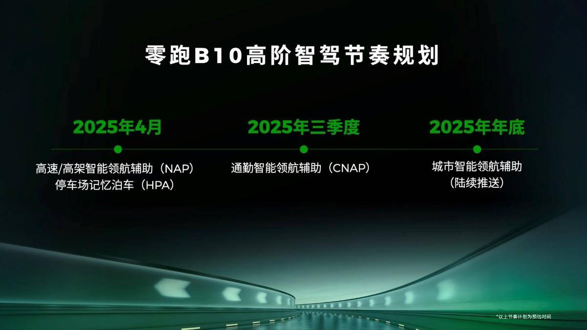零跑B10交付节奏方面:510悦享智驾版上市即启动交付,510激光雷达智驾版及舒享智驾版4月中下旬开启交付,600km续航版本将在6月初开启交付。