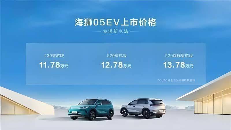 发布会上比亚迪海狮05 EV共推出3款配置车型,售价区间为11.78-13.78万元。作为比亚迪海洋网海狮IP下的全新车型,新车定位紧凑型纯电SUV,基于e平台3.0 Evo打造,采用后置后驱布局+后五连杆悬架,搭载最大功率160千瓦驱动电机,CLTC纯电续航最高520km,同时标配比亚迪天神之眼C-高阶智驾三目版 (DiPilot 100)和智能座舱高阶版-DiLink 100。