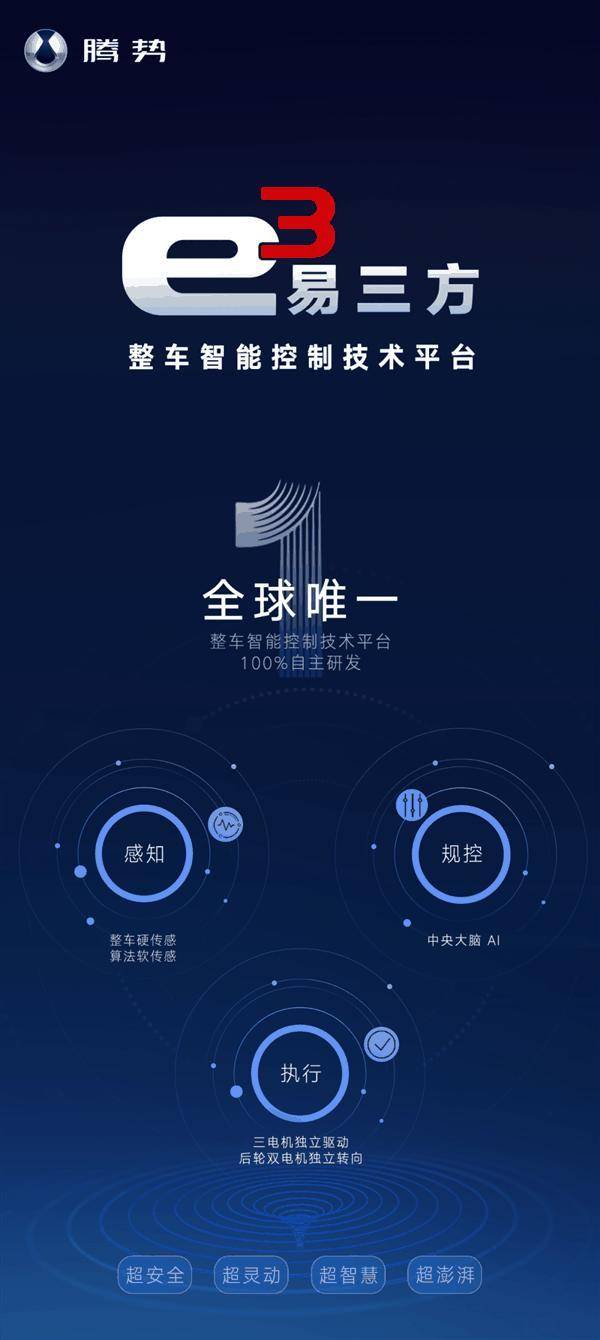 一是腾势独有的易三方整车智能控制技术平台,能够实现整车毫秒级的协同配合。在急转向的瞬间,车身传感器快速感知车身侧倾风险,迅速调整后轮转向角度及不同车轮的扭矩,形成对抗侧倾的反作用力,保持车身平衡。