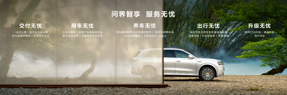 为了给用户更好的出行体验,问界对智享服务进行了新的升级:为用户提供了一站式上牌服务,至快可以一小时完成,让用户交付无忧;对主动式服务进行进一步升级,扩充了新的服务场景,如轻微碰撞、能源耗尽、车被水淹等,都会触发主动式预警与服务,用车更安心。