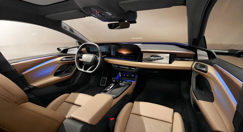 新车基于“智能数字平台(Advanced Digitized Platform)”打造,专为中国市场而来,采用“极简科技感”为核心设计语言,未来感极为强烈,取消奥迪“四环”LOGO,采用点亮的“AUDI”字母标识,前脸环形灯带极为醒目,车身融合Sportback溜背线条与旅行车相结合的风格,搭配隐藏式车门把手以及22英寸低风阻轮毂,车身尺寸为4870mm*1990mm*1460mm,轴距2950mm;车内一体贯穿式曲面屏非常夸张,集成全液晶仪表、中控屏与副驾娱乐屏,可多屏联动,内置高通骁龙5纳米芯片,搭载上汽的“银河”全栈3.0电子电气架构,支持全场景交互和持续OTA升级,并搭载华为鸿蒙智驾方案,实现高快领航、自动泊车及城市路况应对能力。AUDI E5搭载双电机四驱系统,搭载容量为100kWh电池组CLTC纯电续航里程达700km,支持800V超充技术,10分钟可补能370km。