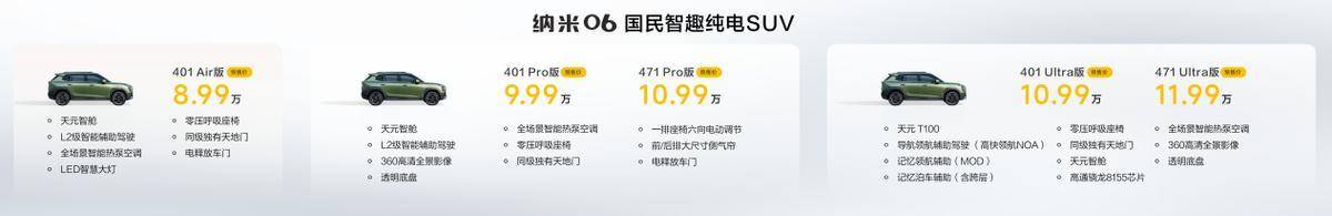 智趣新天地,全民皆共享。4月28日,东风纳米旗下“国民智趣纯电SUV”东风纳米06在成都开启预售,共推出5款配置,预售价格为8.99万元-11.99万元,真香不贵才是真的国民车。目前,东风纳米06已到店无需等待,并带来下订266元抵2066元、电动尾门和全景天幕限时送、至高600万保障服务的智趣守护险限时免费送、多彩车漆限时优惠等智趣4重礼。