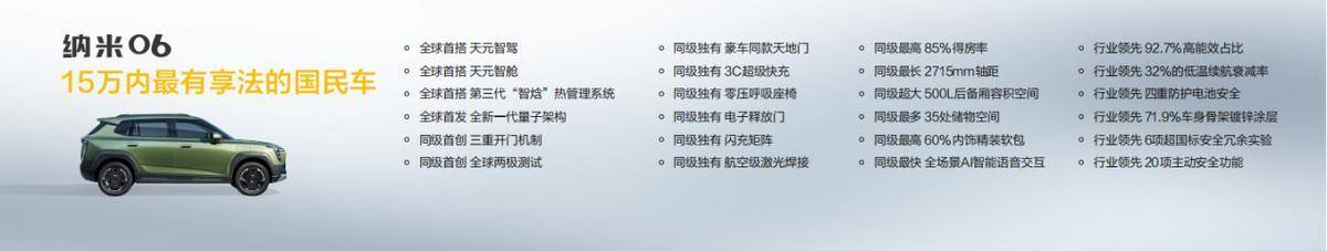心怀热爱向极致,行之所至皆美好。东风纳米06将成为15万内最有“享”法的国民车,依靠东风汽车核心技术资源,以全价值链创新和全球标准打造,实现24项远超15万级的用车价值,期待成为更多年轻人智趣相投的梦想之车!未来,在国民车赛道上,东风纳米将继续秉承“实现每个人的美好出行梦想”的愿景,依托东风汽车深厚的造车底蕴,加速实现每个人的美好出行梦想,持续助力中国新能源汽车产业的高质量发展。