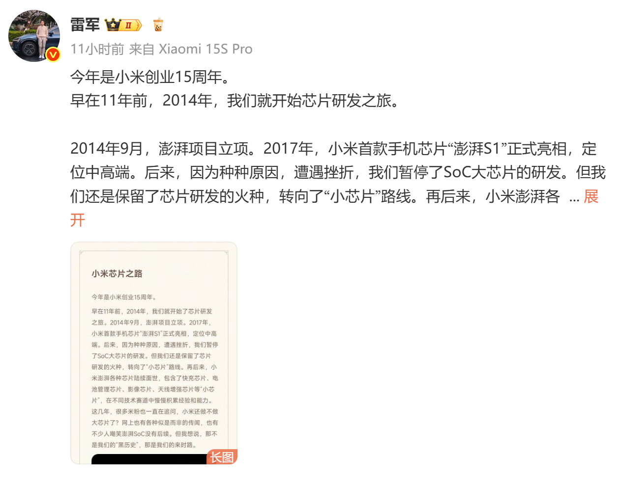 雷军低调回归微博,欲用新芯片和SUV对抗信任危机