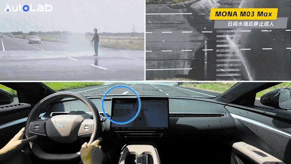 而MONA M03 Max系统在雨刮器三档的时候,会判断为雨量过大不适合辅助驾驶并退出功能,穿过水墙时未达到条件所以还在功能中。