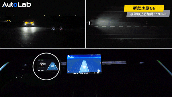 我们拿了一台无激光雷达的新版小鹏G6,系统是6月即将全量的版本,来测测它的AEB能不能在夜间、无路灯、过百时速各种debuff叠满的情况下应对防撞桶。