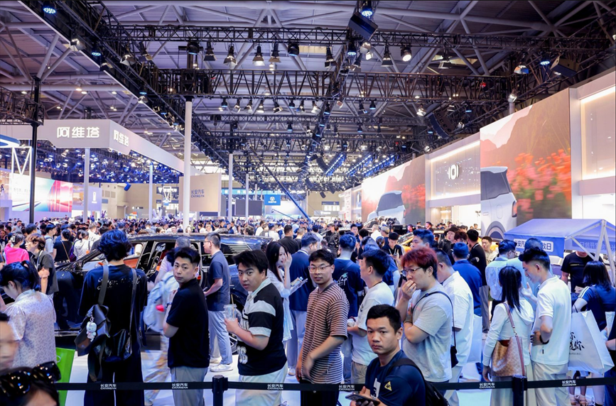 重庆车展N8馆内,8000平方米的长安汽车专馆人潮汹涌。观众们挤在阿维塔06周围体验智能座舱,深蓝S09前试驾队伍排成长龙,“金钟罩全固态电池”展台闪光灯此起彼伏。