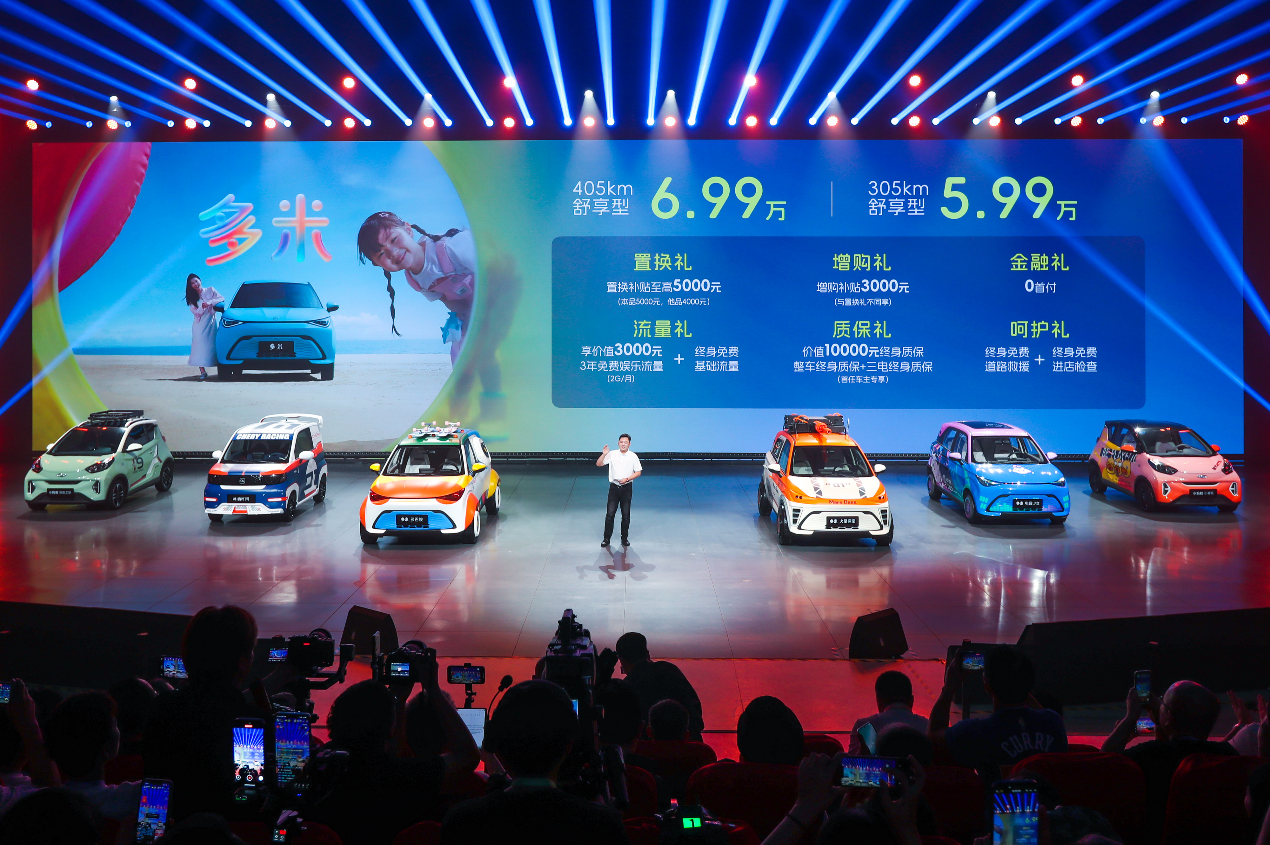 其中,多米作为“5万级真5座纯电MINI SUV”,305km舒享型上市指导价5.99万元起,405km舒享型上市指导价6.99万元起。