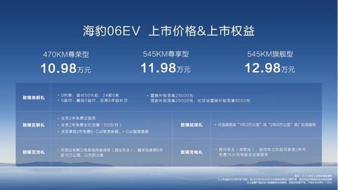 6月7日,比亚迪海洋网潮美质选轿跑海豹06EV于重庆车展上市。新车共推出3款配置,售价10.98万-12.98万元。并推出购车享致臻焕新礼、致臻互联礼、致臻无忧礼、致臻延保礼、致臻充电礼多重礼遇。凭借家用轿跑形象,海豹06EV在颜值、驾乘、品质、安全方面全面领先同级,全方位满足年轻家庭用户多元用车需求。
