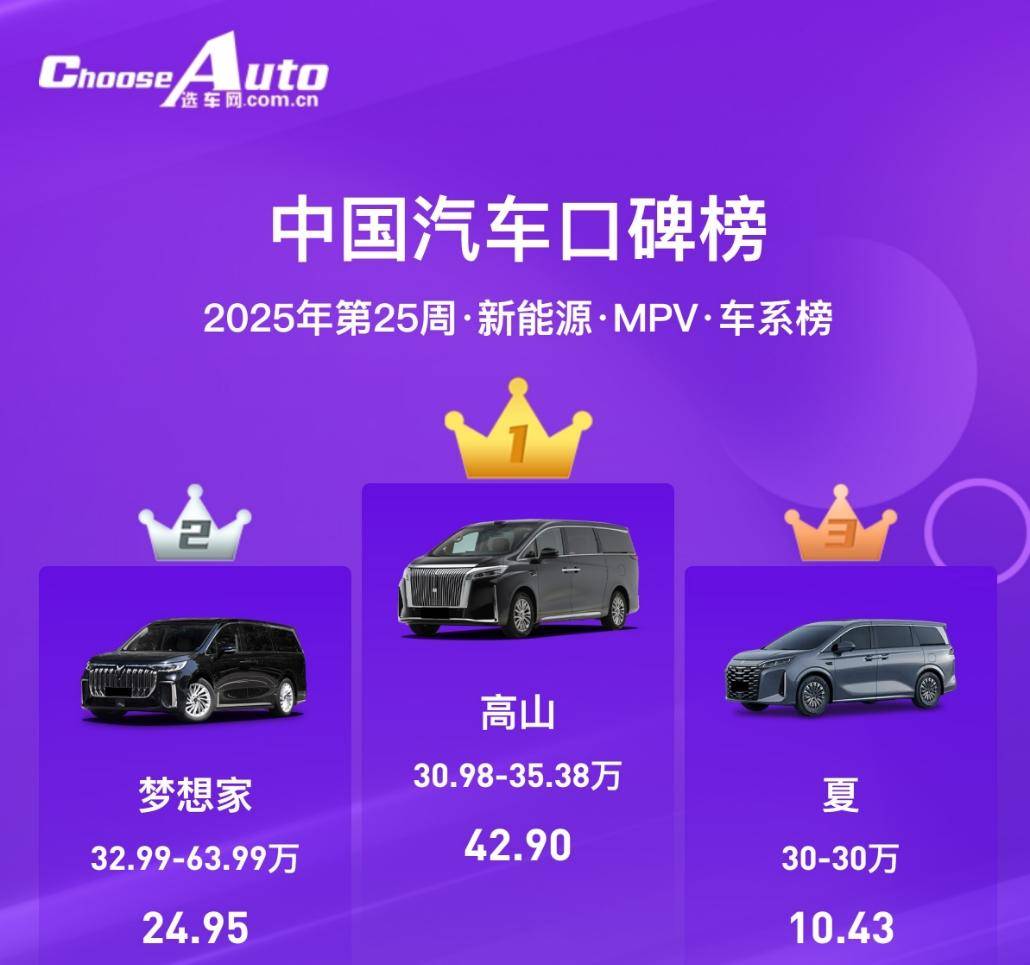在新能源MPV市场,高山DHT-PHEV以225.73分的口碑得分领先,价格区间为31.58-40.58万元。梦想家和夏分别以74.71分和52.18分位列第二和第三,价格区间分别为32.99-63.99万元和30-30万元。这些车型在空间、舒适性和口碑上各有特色,非常适合家庭用户的需求。