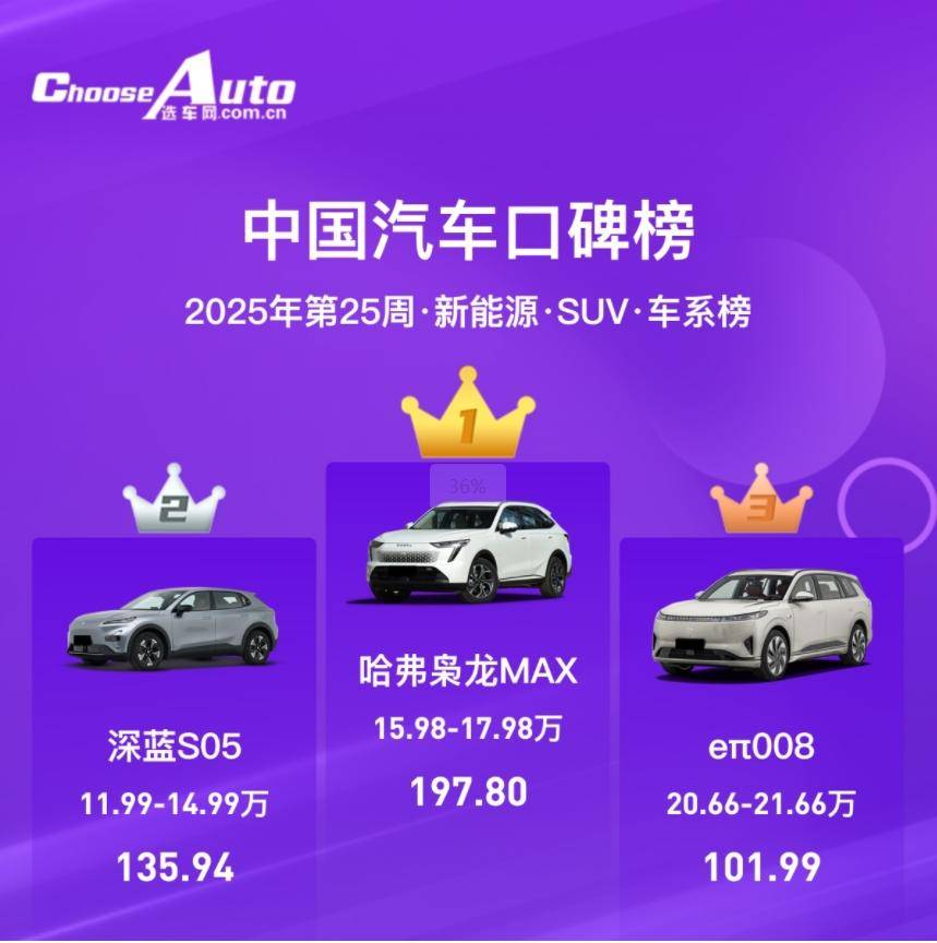 SUV车型中,et008以295.86分的高口碑得分拔得头筹,其价格区间为20.66-21.66万元,显示出其在消费者中的极高人气。紧随其后的是领克08新能源,以278.88分的成绩位列第二,价格区间为19.58-28.8万元,而哈弗枭龙MAX则以263.33分的成绩排名第三,价格区间为15.98-17.98万元。这些车型以其出色的性能和合理的价格区间,赢得了消费者的青睐。