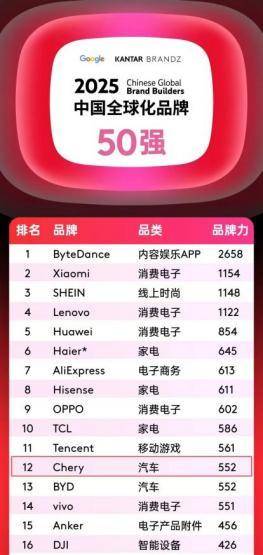 秉持“In somewhere,For somewhere”理念,奇瑞锚定欧盟等高法规、高标准市场,深度融入当地市场,提供全球化解决方案。在西班牙巴塞罗那6月份召开的CATC国际技术专家委员会会议中,奇瑞JAECOO 7获得中国首张“中欧碳足迹数据互认”车型证书,引领中国汽车“绿色出海”新范式。在ESG建设方面,奇瑞不仅入选2025年《财富》中国ESG影响力榜,还成为“2024-2025福布斯中国可持续发展工业企业”唯一入选汽车企业。在Google谷歌与凯度联合发布的《2025中国全球化品牌50强》榜单中,奇瑞连续第八次上榜,位居汽车品类的首位。