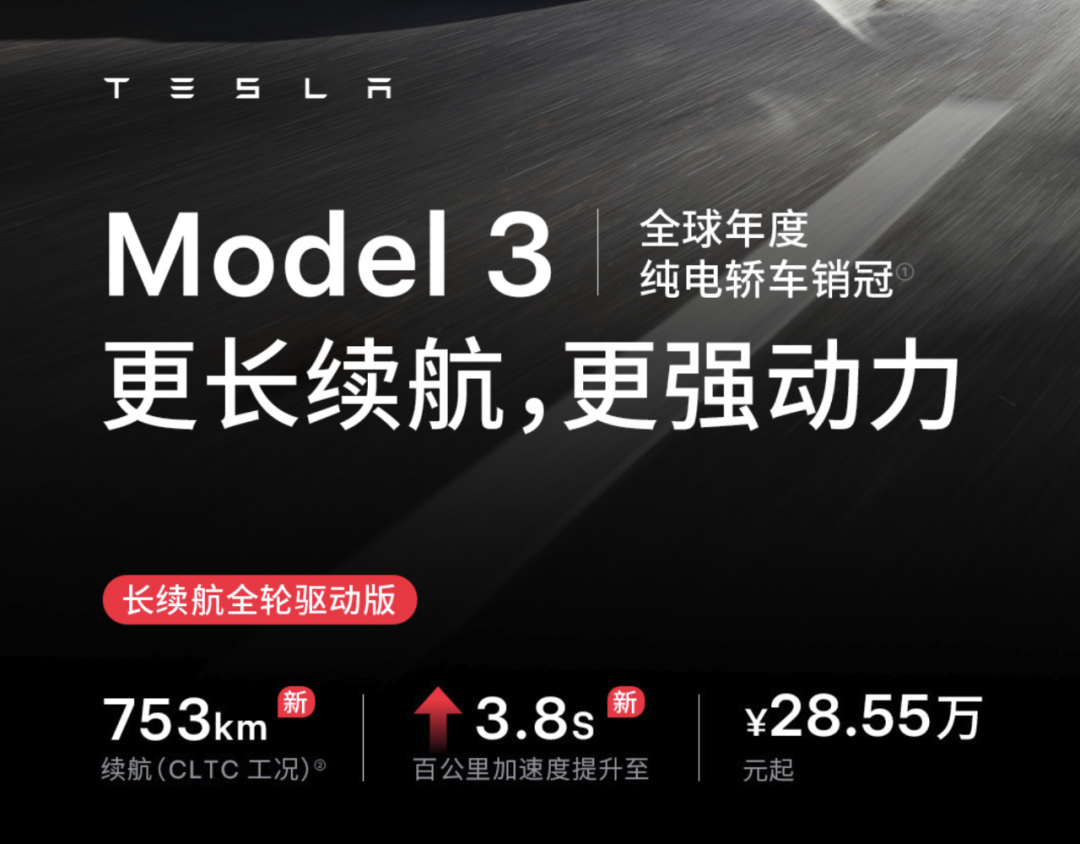 首先来说特斯拉,Model 3在本月升级了新款的长续航版本,加速和续航都有升级,不过在价格上有了1万元的上涨。