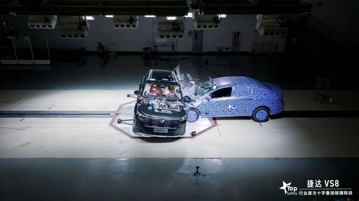 捷达 VS8 的 “十字夹击” 挑战,恰恰戳中了这种 “测试与现实的割裂”。第一次 60km/h 追尾,模拟的是 “红灯排队时被后车撞击” 的常见场景 —— 此时车辆尾部需要快速溃缩吸能,同时保证车身不发生 “甩尾” 或 “弹跳”,否则会加剧第二次碰撞的风险;第二次 60km/h 侧撞,则复刻了 “被横向来车撞击驾驶员侧” 的致命瞬间,此时不仅要考验 B 柱的抗变形能力,更要验证 “车身已受损时,安全系统是否还能正常响应”。