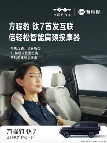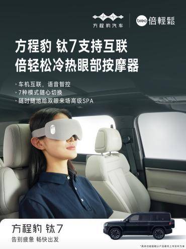 针对用户出行中的健康需求,钛 7 支持互联倍轻松冷热眼部按摩器和智能肩颈按摩器。其中,眼部按摩器拥有 7 种模式随心切换,肩颈按摩器则提供 18 种模式按需选择,两款产品均支持车机互联与语音智控,用户在长途驾驶或通勤途中,只需一声指令即可随时享受专业级的眼部 SPA 与颈肩放松,让旅途不再疲惫。