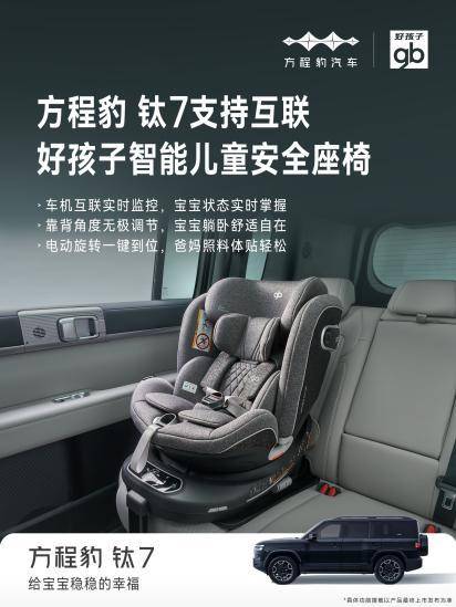 同时,钛7支持互联智能儿童安全座椅,不仅能通过车机互联系统,实现宝宝状态实时监测还可以智能调节靠背角度,确保宝宝的舒适躺卧;联动车机实现的自动旋转与归位功能,也让宝爸宝妈照料宝宝更轻松。