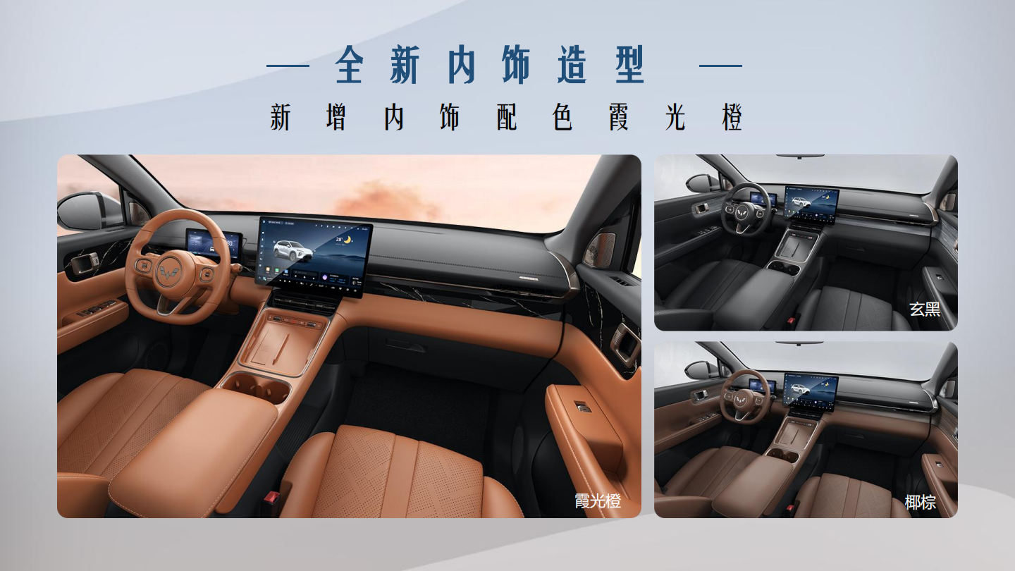 内饰方面,2025款五菱星光S整体基本沿用现款车型的设计风格,依旧标配15.6英寸中控大屏和8.8英寸组合仪表,同时换装全新样式方向盘,以及配备50W风冷无线快充。新车搭载LingOS灵犀智能系统,只需使用"你好,小菱"唤醒语音助手,可随享爱奇艺、QQ音乐、高德导航等软件,覆盖出行、娱乐、社交等全场景。内饰配色除原有玄黑/椰棕外,新增"霞光橙",兼具动感与活力。