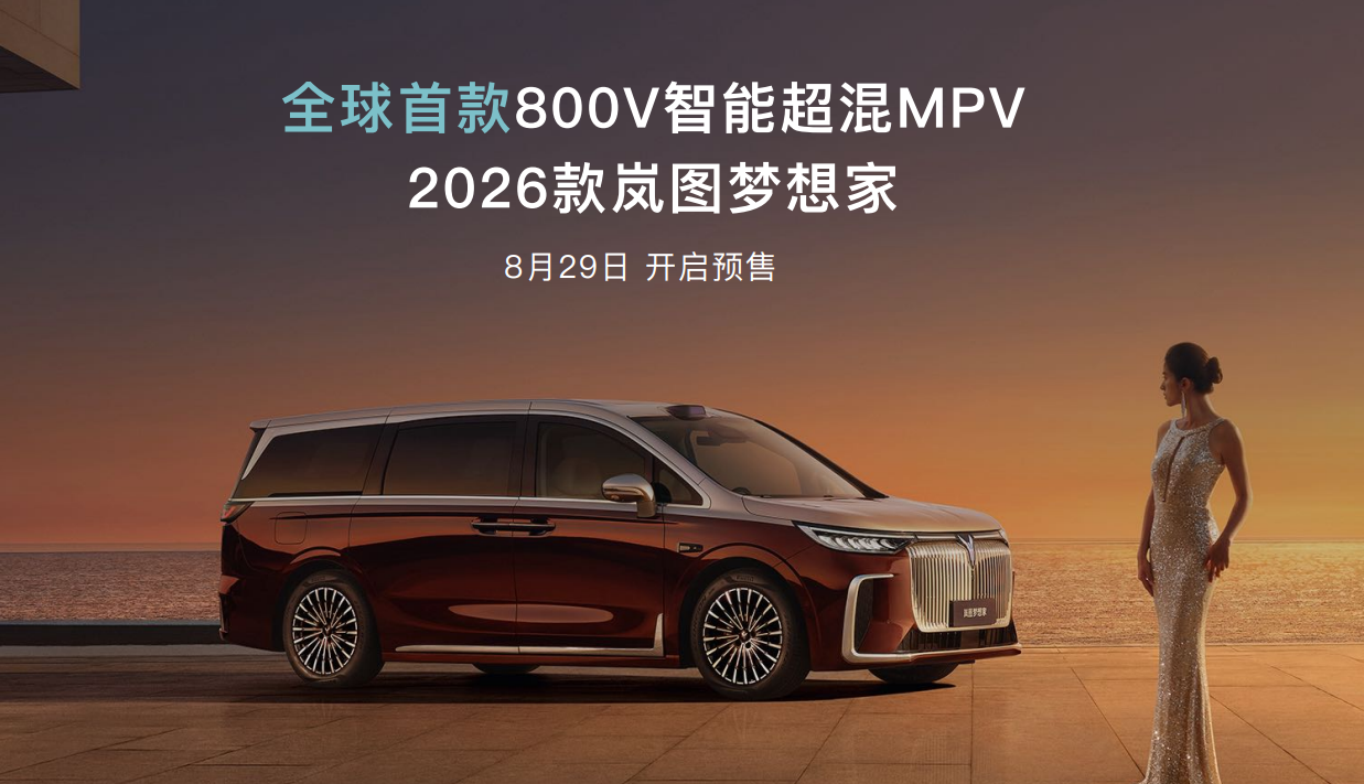 中国新能源技术迎来重大突破!岚图汽车今日正式发布全球首个基于原生纯电架构打造的智能超混技术——岚海智能超混,将800V电气架构优势全面带入混动领域,宣布2026款岚图梦想家将首发该技术,并于8月29日开启预售。