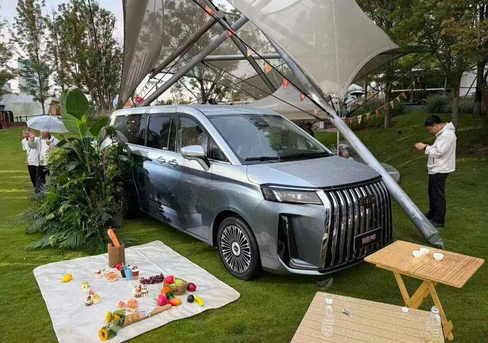 锐胜M8作为品牌开山之作,首先在外观上就给人留下深刻印象。新车采用了大气硬朗的设计风格,前脸配以直瀑式的镀铬格栅,十分张扬。两侧矩形前大灯与带有夸张散热口样式的前包围相搭配,营造出强烈的视觉冲击力。车身侧面造型简约朴实,银黑双色的轮圈样式较为花哨,并配备了MPV标志性的双侧侧滑门。车尾部分则以方正造型为主,采用贯穿式尾灯与镀铬饰条相结合的设计,并将BAM的品牌标识融入其中。车身尺寸方面,新车的长宽高分别为5317×1870×1955mm,轴距达到了3200mm,这一尺寸已经超过了市场上许多主流MPV车型,为内部空间布局提供了坚实基础。