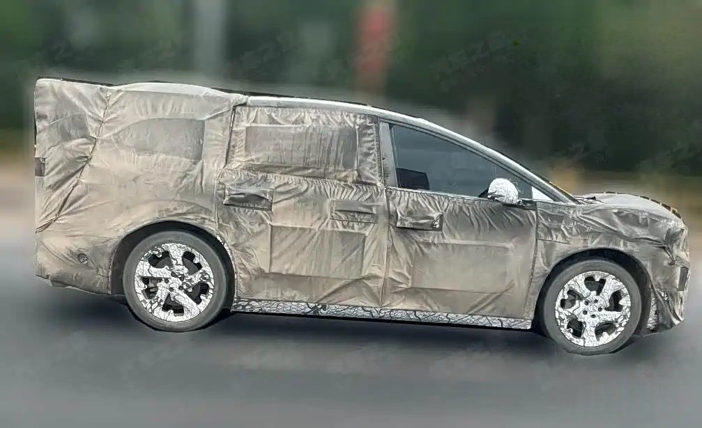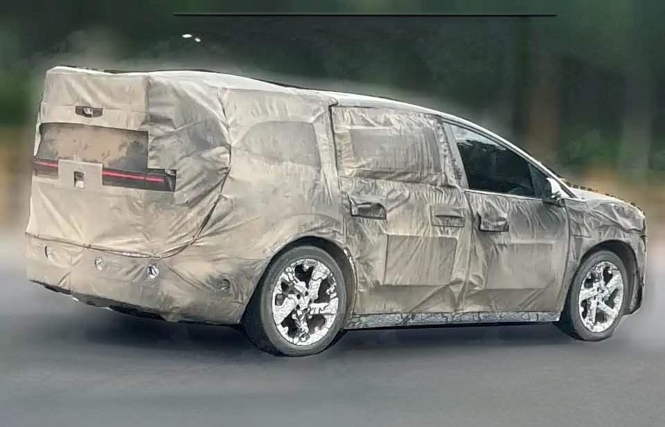 从图中可以看到,新车虽然有着非常厚实的伪装,而且前机盖位置被垫起了,但预计新车的前脸造型依旧和i6/i8保持一致,同时可能在细节方面有微调。细节方面,中间是横向的进气格栅,大灯位于两侧,车顶依旧有激光雷达。