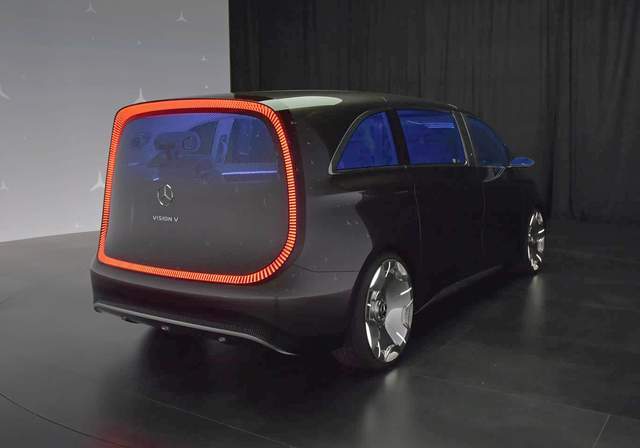 尾部造型垂直,有着大面积的后风挡设计,和现款的奔驰V级风格一致。从细节以及此前的Vision V概念车尾灯造型来看,量产版的VLE尾灯会是位于后风挡和后尾门两侧的竖条形布局,包括车顶尾翼上预计会有贯穿式灯带与之相呼应。