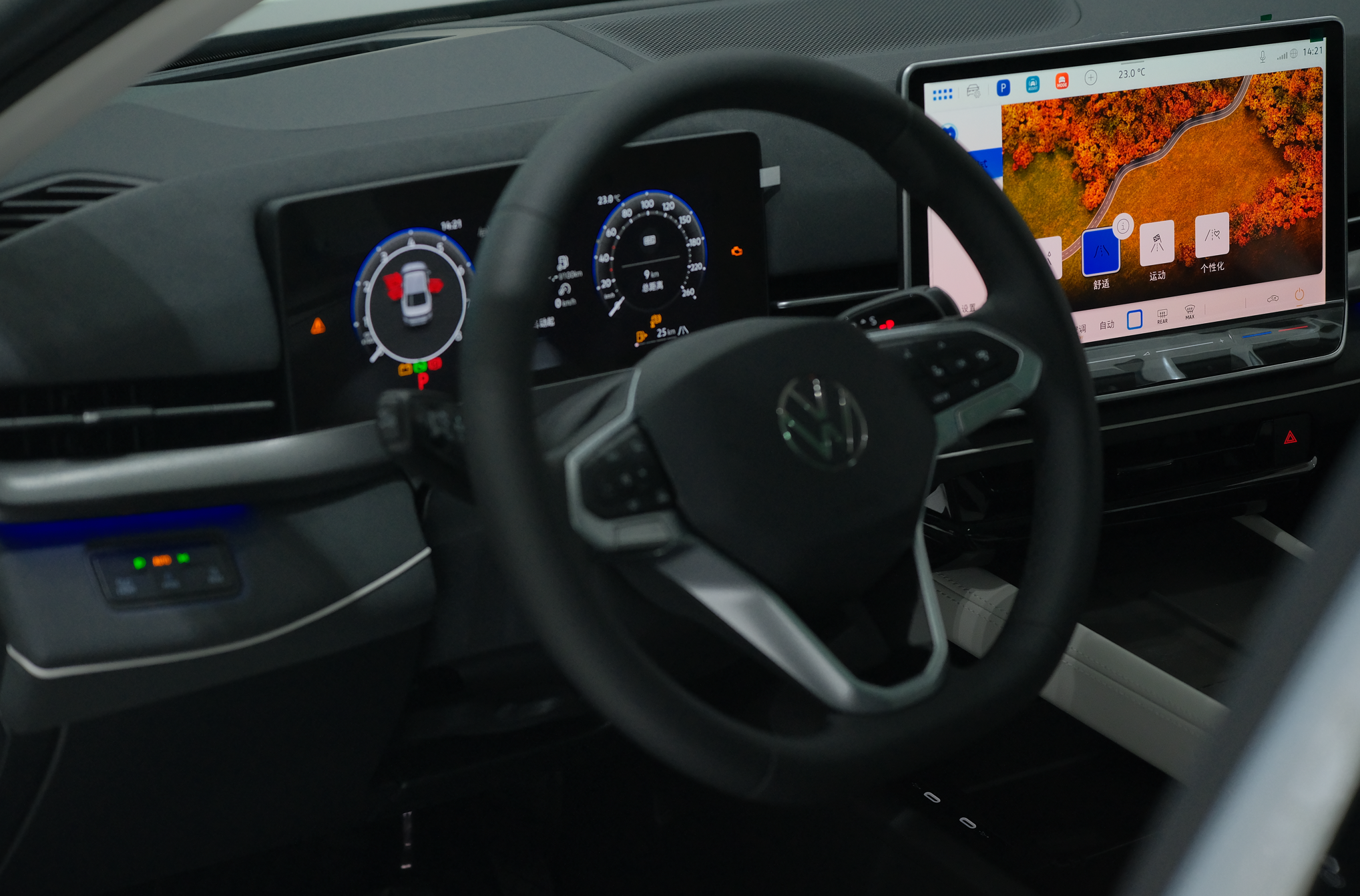 如果没有人提醒你的话,那么坐进速腾L的第一反应是会不会坐进了一辆插混轿车上。其整体的布局其实和目前在售的速腾比较接近,没有特别花里胡哨或者过于时尚的设计,也就是中规中矩的德系车设计味道,但亮点是非常之多的。首先就是裸露的液晶仪表,外加悬浮式的中控大屏,前者10.25英寸,后者15英寸,而且也有W-HUD显示系统,也就是三屏联动。尽管相比于目前在售的速腾按键少了很多,但依旧在屏幕下方保留一排实体按键。而且把原来的机械式挡把换成了电子怀挡结构,还加入了防误触的设计,用过都知道怀挡才是最好的,接触空间而且换挡便利。