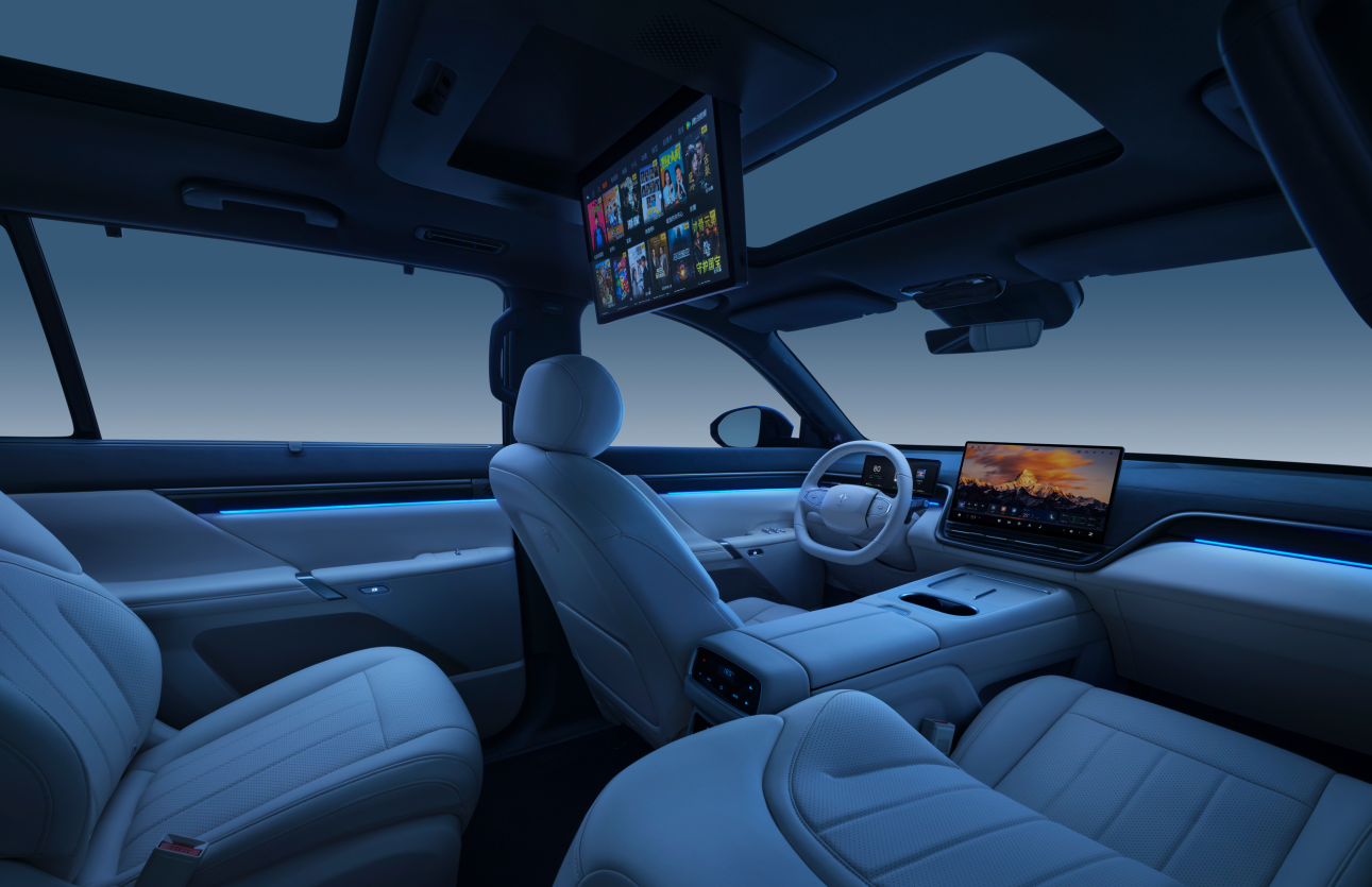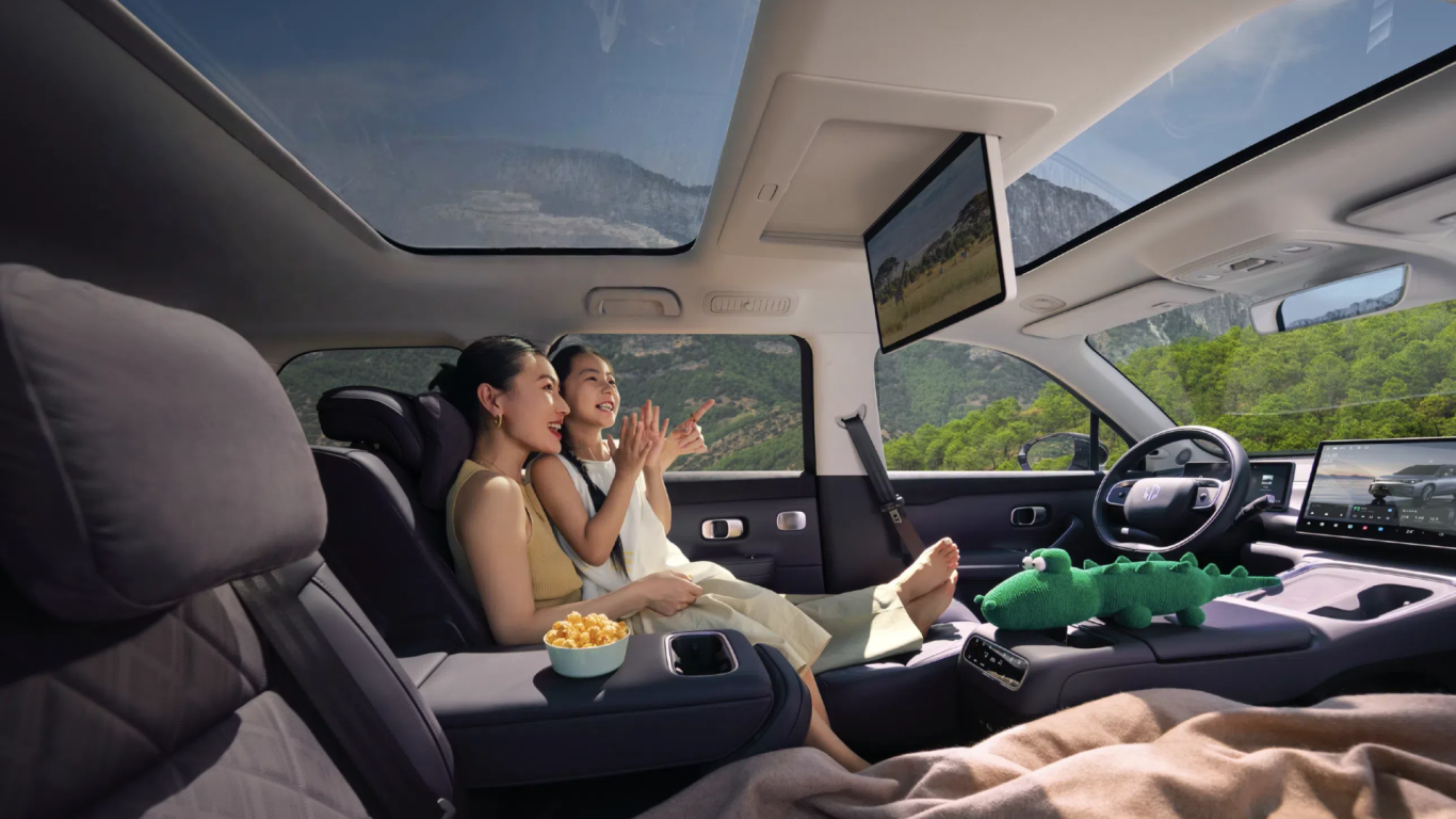 现代家庭对智能科技的需求越来越高。eπ008搭载豆包+DeepSeek双AI大模型语音助手,像家人一样懂你所需;15.6英寸2.5K后排娱乐屏,显示效果比零跑C16的2K屏更加清晰细腻,让孩子在路上也能安心看动画。