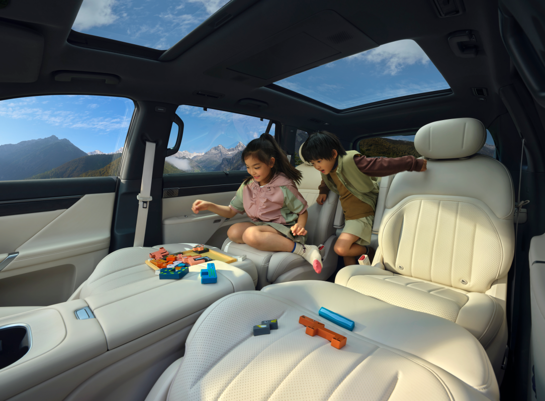 eπ008全车还采用了18㎡云感亲肌面料,触感柔软亲肤;双层隔音玻璃+隐私玻璃和21英寸超静音轮胎,打造出图书馆级的静谧空间,再也不用担心噪音打扰老人和孩子休息。