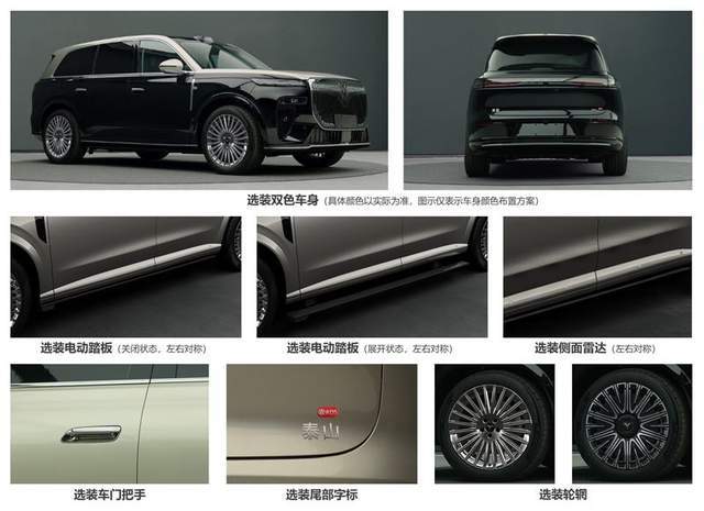 细节方面,岚图泰山配备了22英寸的复古银色饼圈、电动侧踏板、具有动态星光灯效的内凹式门把手等设计,以增添优雅华贵的气息。在前挡风玻璃顶端,岚图泰山布置有一颗醒目的激光雷达,全车共四颗激光雷达,预示着这款旗舰SUV将采用华为乾崑ADS 4辅助驾驶技术。