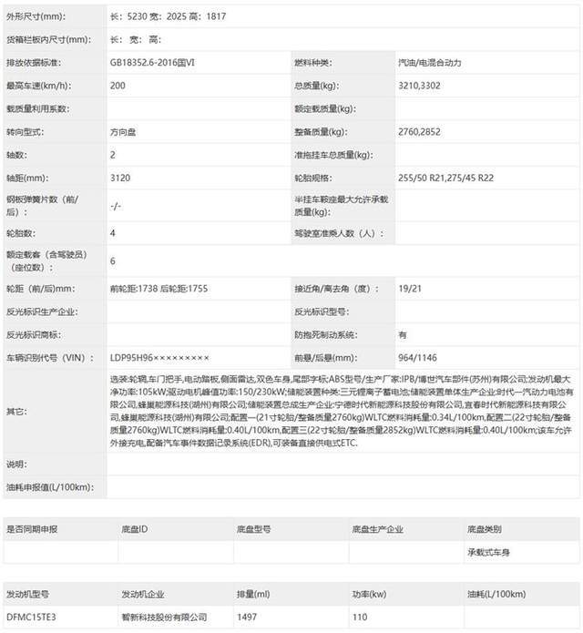 根据申报信息,岚图泰山将搭载一具最大功率输出110kW的1.5T混动专用发动机以及前后双驱动电机+电动四驱系统。驱动电机峰值功率输出150kW+230kW,三元锂电池容量为65kWh,这将使得其在CLTC工况下具备370公里的纯电行驶能力,CLTC工况综合续航1400公里。可以做到城区使用,满电两周一充。另外,得益于800V架构和5C超充技术,岚图泰山仅需12分钟即可将电池电量从20%充至80%,这让日常使用更便捷。