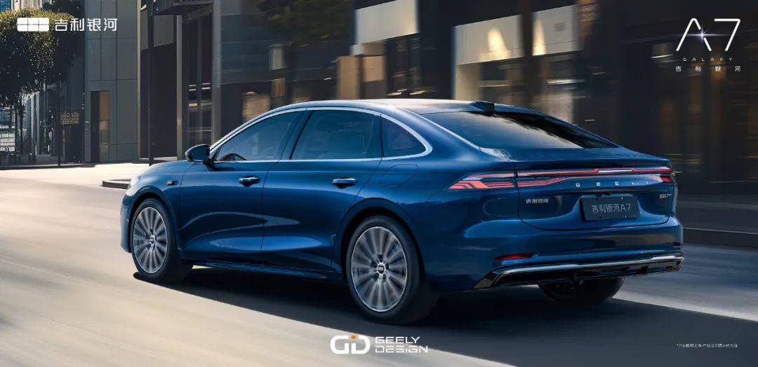 先看外观,银河A7整体造型端庄稳健,经典三厢设计搭配流畅车身线条,4918×1905×1495mm的车身尺寸,尽显大气与豪华;一体式贯穿前灯与后贯穿尾灯科技感十足,21处空气动力学减阻设计,不仅美观还降低风阻。
